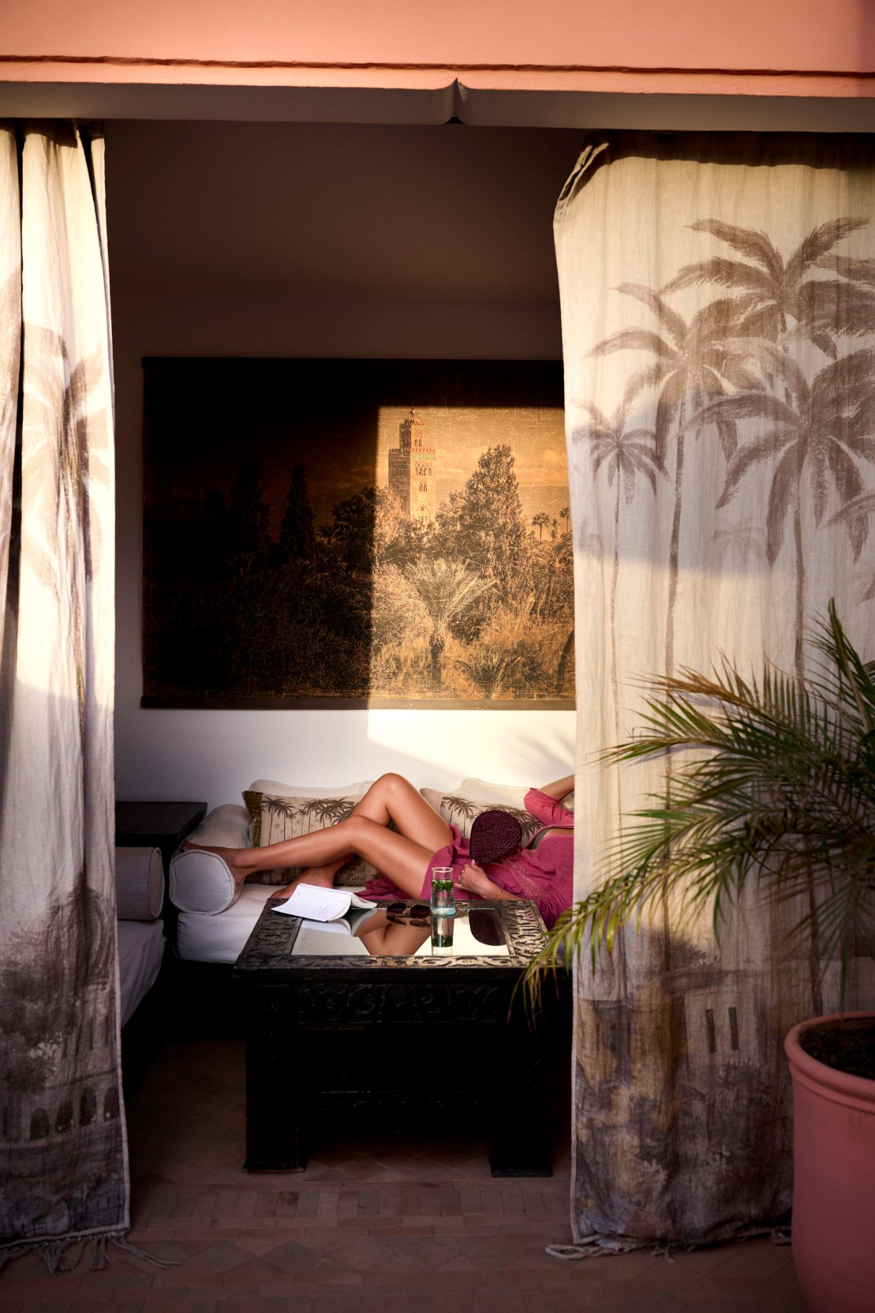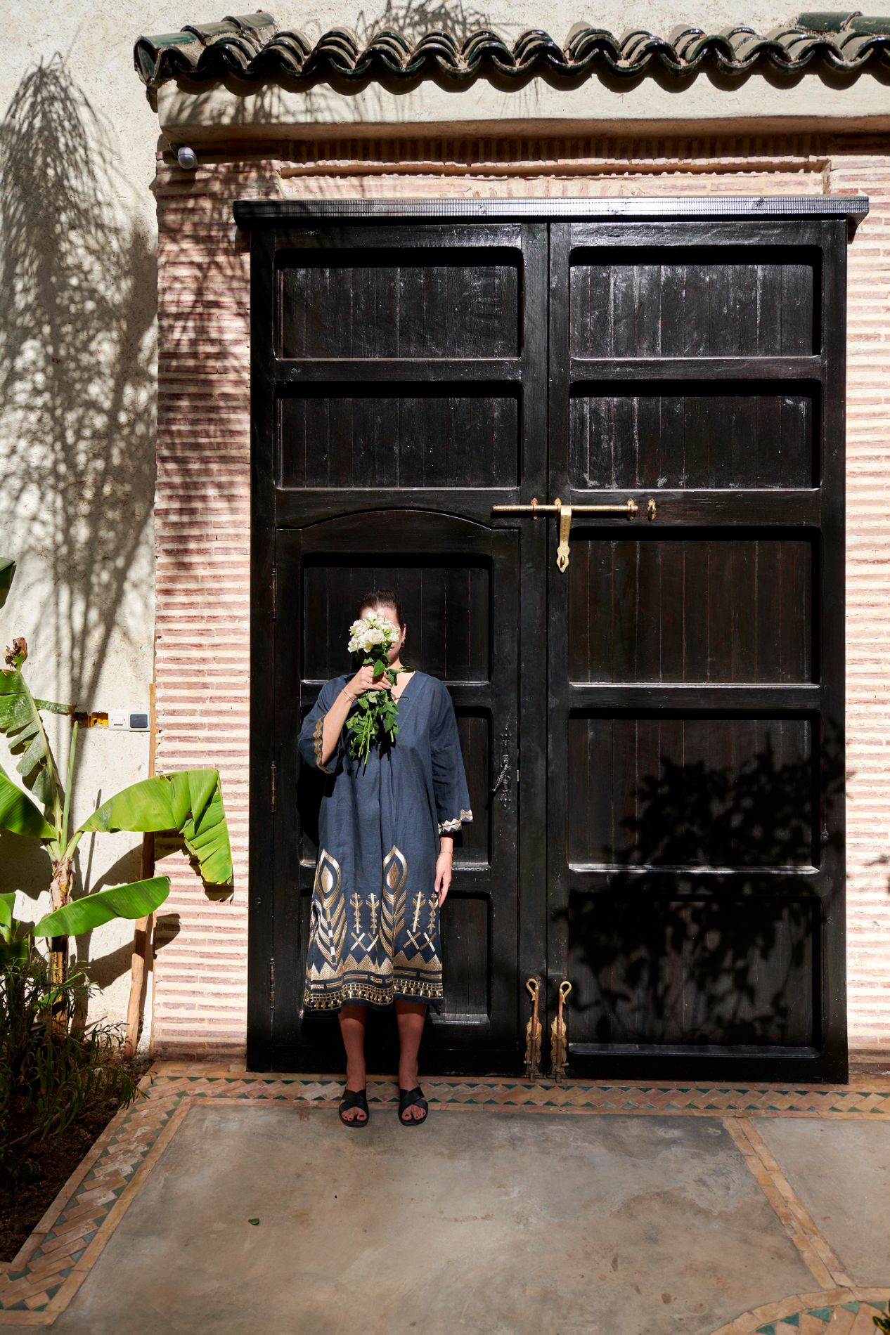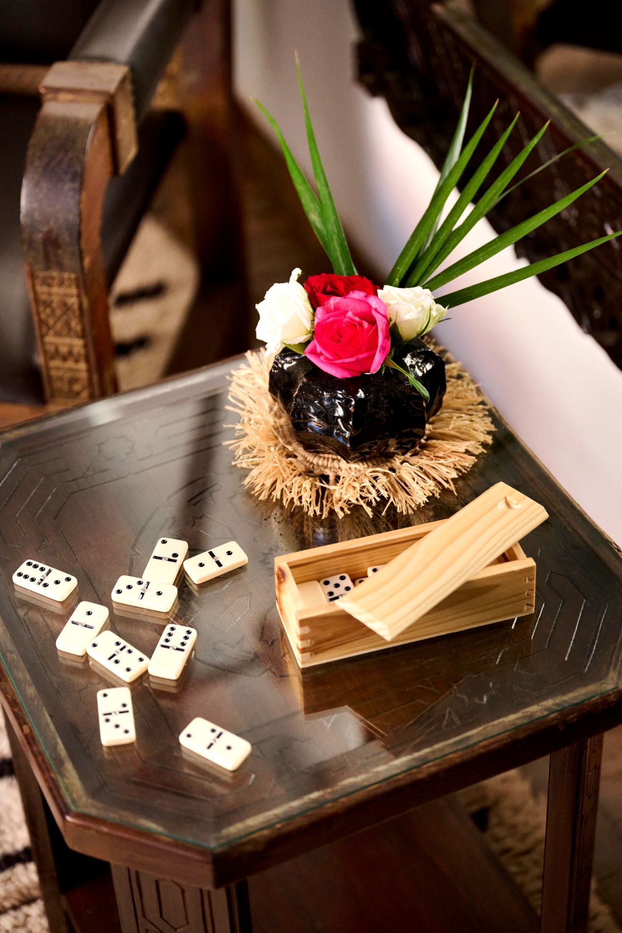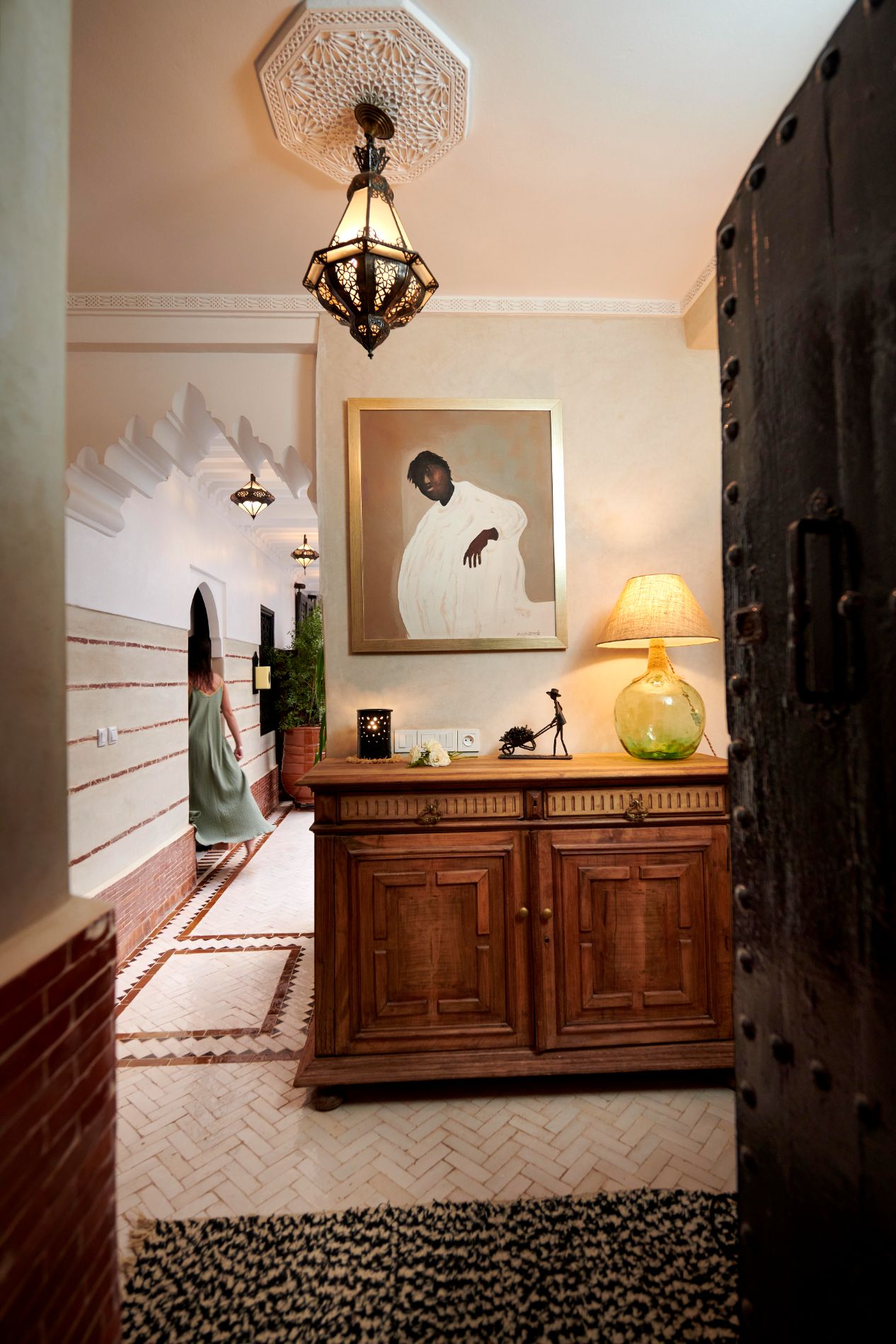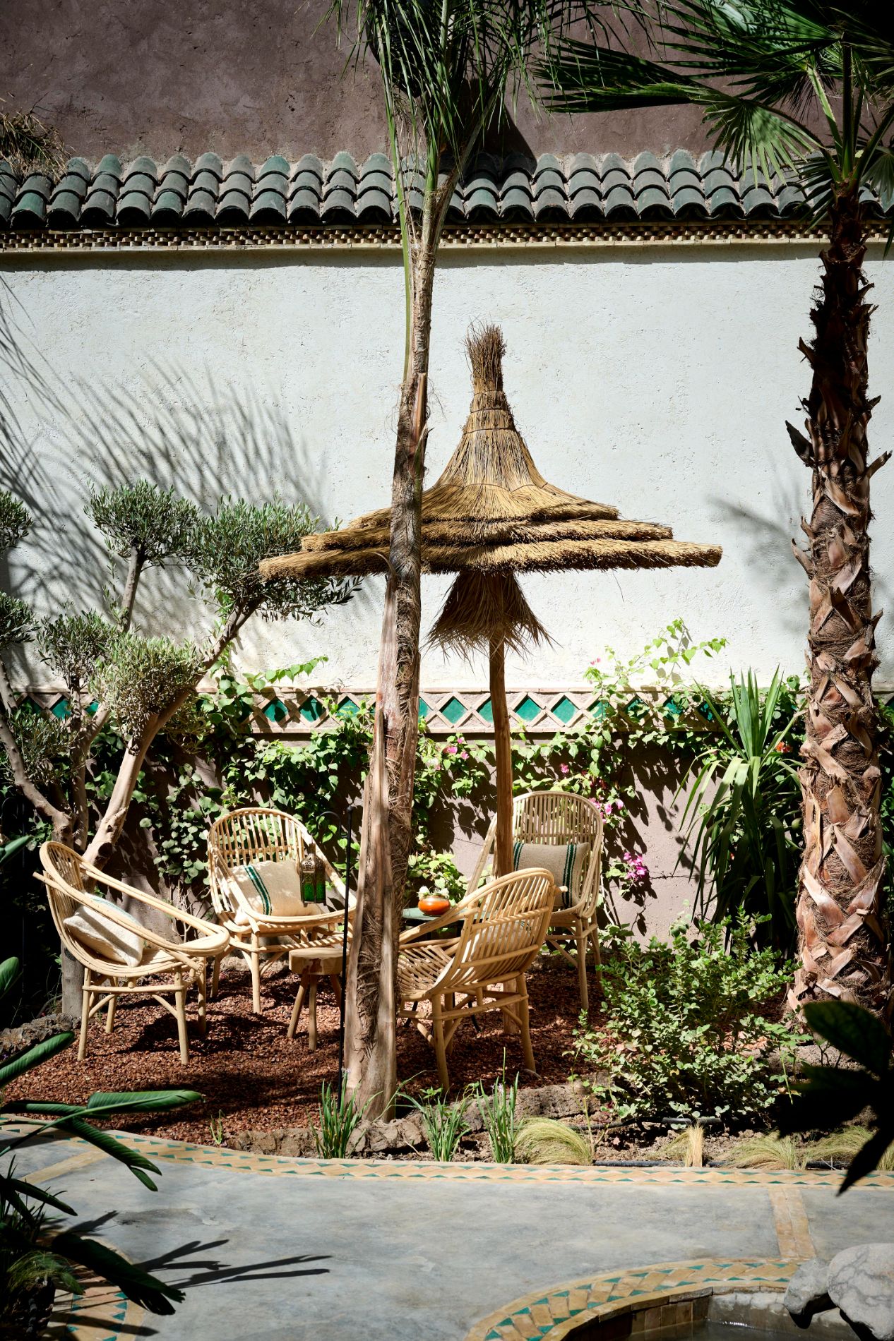 The story of our Moroccan riad began some twenty years ago, when we, Sylvie and Jean-Louis Limongi, fell under the spell of the fabulous country of Morocco, and the passion and enthusiasm that emanates from it and its people. Then it was love at first sight. It was love at first sight for a building rooted in the buzzing medina. This building would become our family home. Two decades later, with a furious desire to rekindle its flame, we decided to give it the freshness and color that make it the verdant Eden it is today. Yes, verdant. Like an oasis emerging in the middle of the Marrackchi souk. Verdant thanks to its lush garden - oh privilege! - accessed from the house via a secret corridor. Coconut palms, washingtonias, fruit trees and other climbing plants reign supreme. Shades, fragrances... and silence. A silence you can enjoy in the shelter of a pergola, near the waterhole or stretched out in a hammock (the art of the siesta is also practiced here). A silence that, while surprising and soothing, lets in a few snippets of the bustling life that plays out here, behind the city ramparts of Bab Doukkala. A genuine, authentic, lively Moroccan neighborhood. A district where the Morocco of yesterday rubs shoulders with the Morocco of today, where people still bake their bread in the communal oven, rush to the hammam or haggle in the souk's shopping streets.