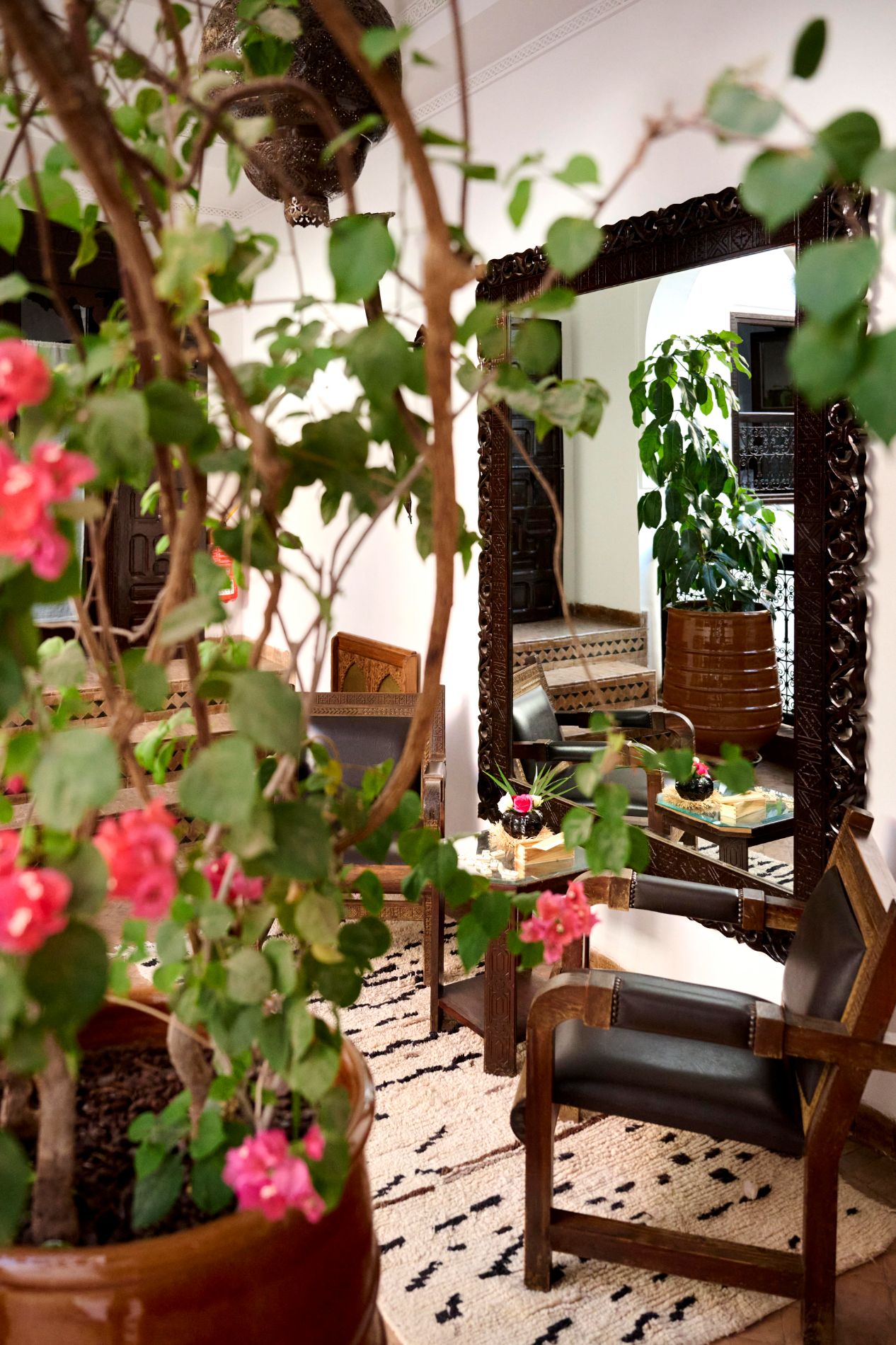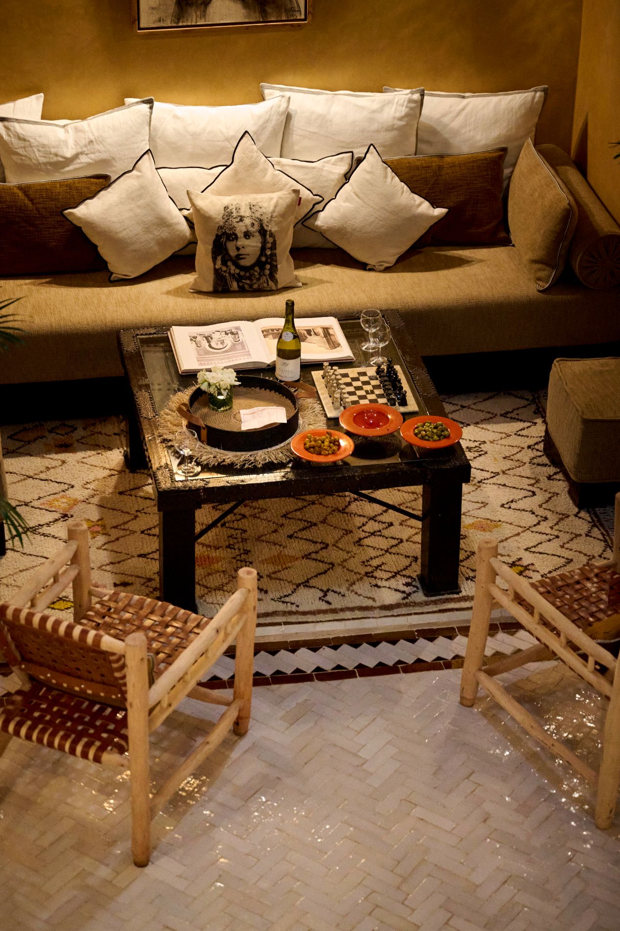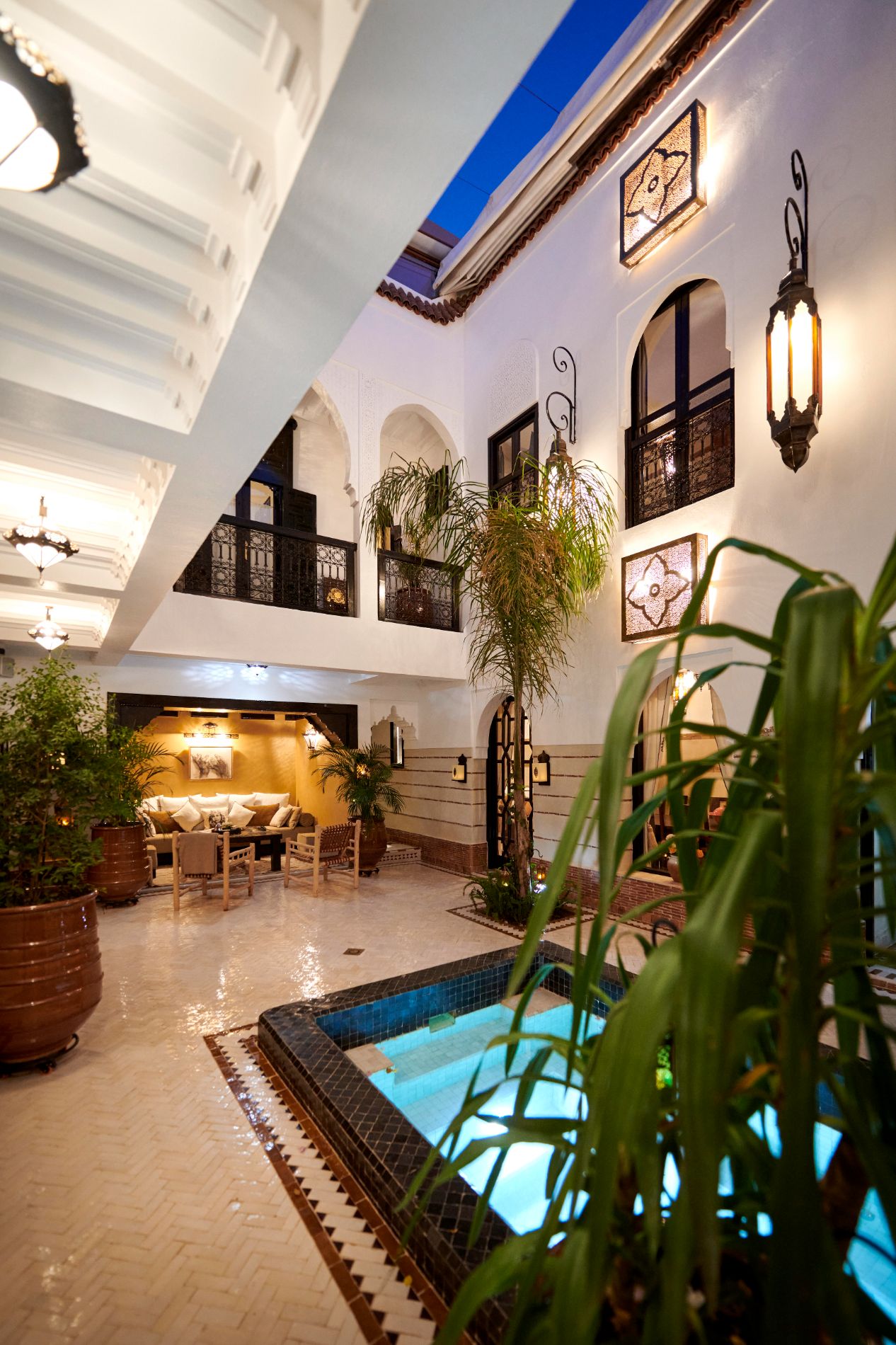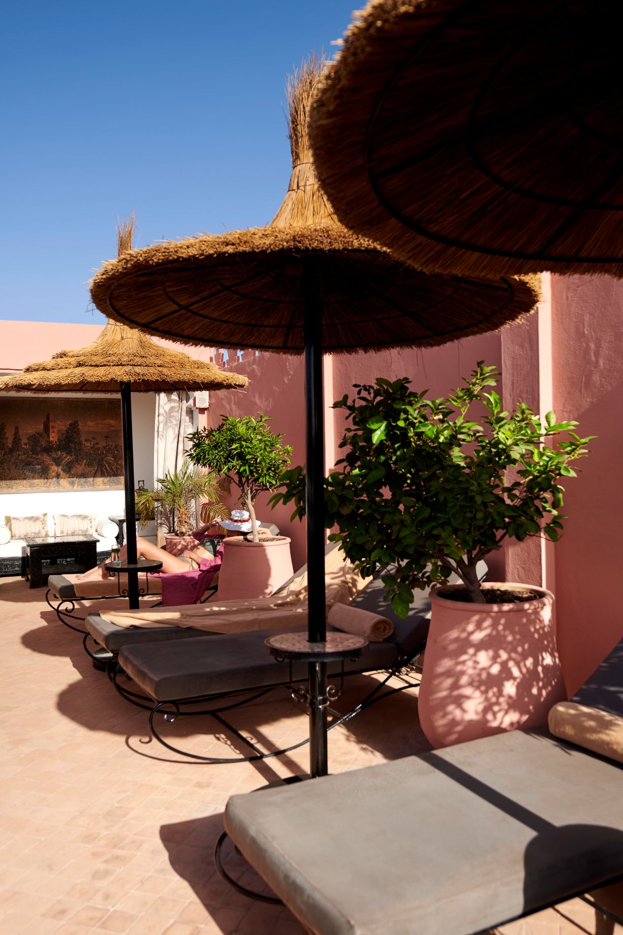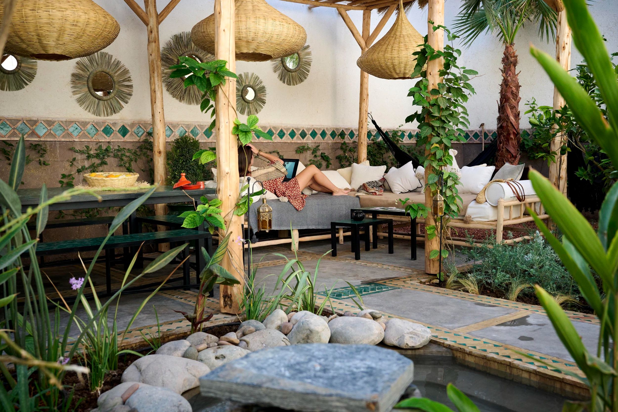 The story of our Moroccan riad began some twenty years ago, when we, Sylvie and Jean-Louis Limongi, fell under the spell of the fabulous country of Morocco, and the passion and enthusiasm that emanates from it and its people. Then it was love at first sight. It was love at first sight for a building rooted in the buzzing medina. This building would become our family home. Two decades later, with a furious desire to rekindle its flame, we decided to give it the freshness and color that make it the verdant Eden it is today. Yes, verdant. Like an oasis emerging in the middle of the Marrackchi souk. Verdant thanks to its lush garden - oh privilege! - accessed from the house via a secret corridor. Coconut palms, washingtonias, fruit trees and other climbing plants reign supreme. Shades, fragrances... and silence. A silence you can enjoy in the shelter of a pergola, near the waterhole or stretched out in a hammock (the art of the siesta is also practiced here). A silence that, while surprising and soothing, lets in a few snippets of the bustling life that plays out here, behind the city ramparts of Bab Doukkala. A genuine, authentic, lively Moroccan neighborhood. A district where the Morocco of yesterday rubs shoulders with the Morocco of today, where people still bake their bread in the communal oven, rush to the hammam or haggle in the souk's shopping streets.