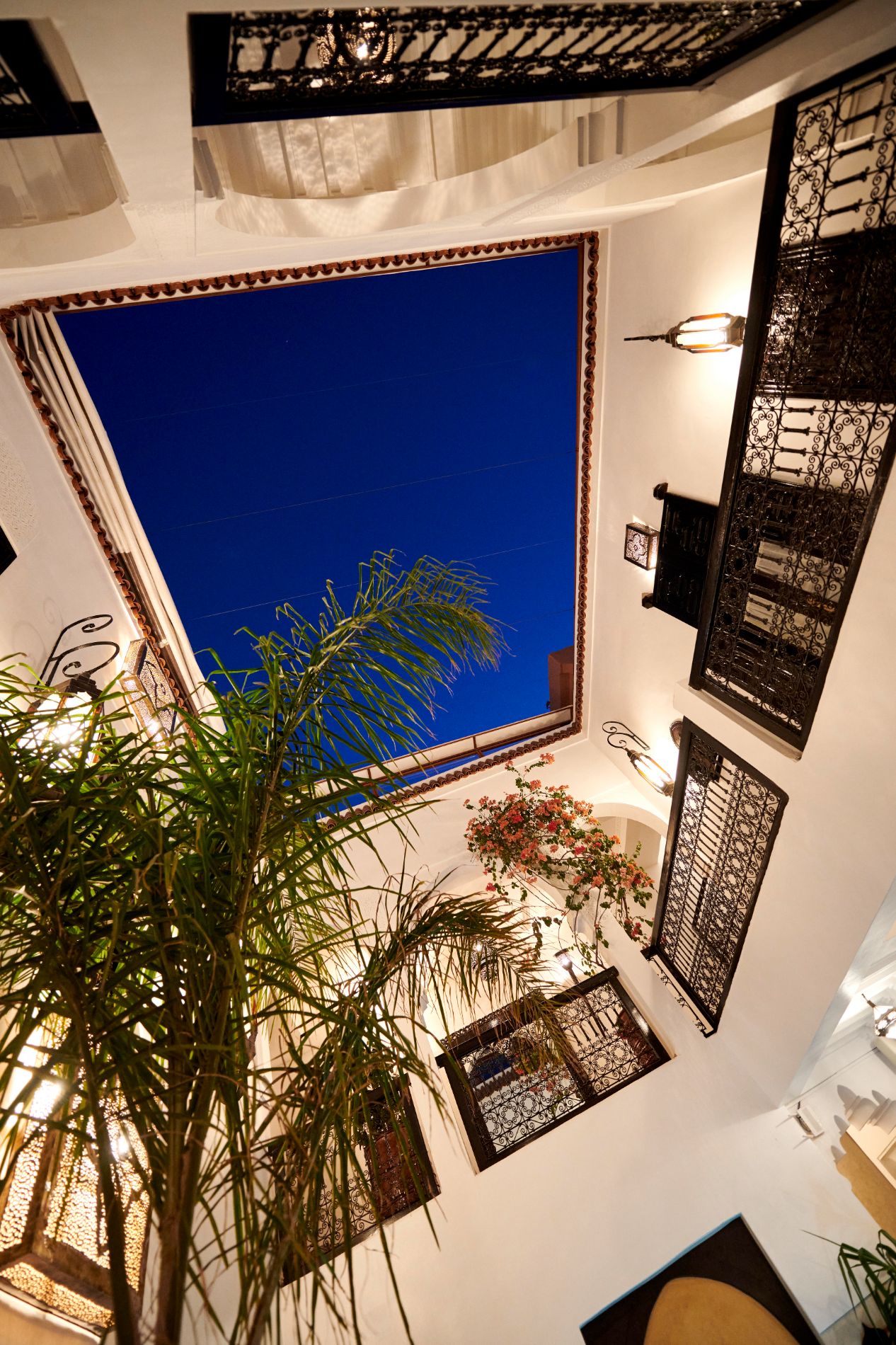 And when night falls on Marrakech, when the Medina falls asleep in the dark, the Dar Amanza oasis is dressed in warm, subdued lights. These lights emanate from the forty or so lamps forged especially for the occasion by the talented Mohammed, a lamp-maker from the place of the Ferblantiers. No, the Thousand and One Nights are not a fairy tale. They're a reality experienced at the heart of the Dar Amanza Moroccan riad.