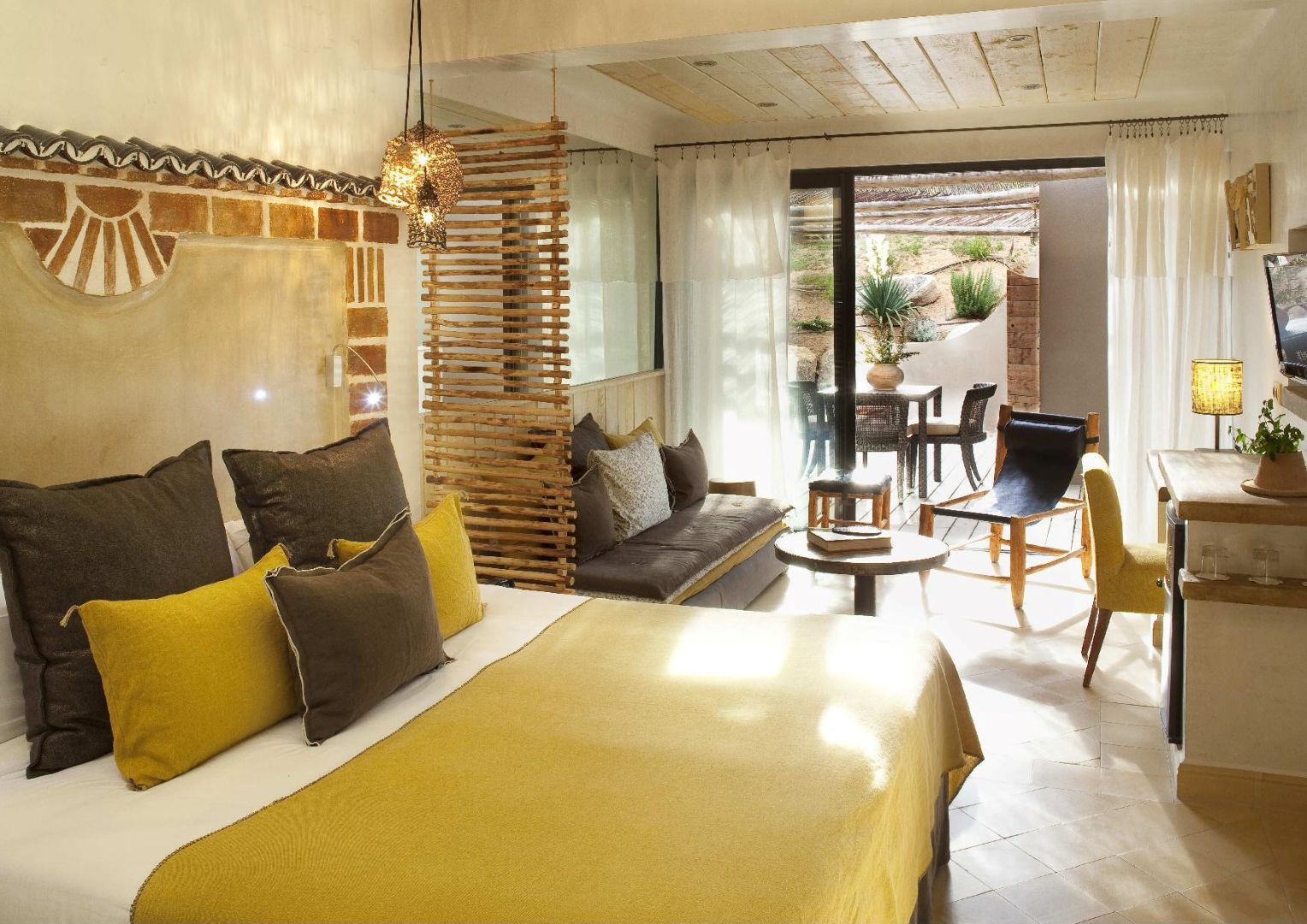 Alors bien sûr nous nous sommes appuyés sur des professionnels. Mais pas n’importe lesquels… Les nôtres ! Oui, nos menuisiers, ferronniers, maçons qui sont partie intégrante de la famille d’U Capu Biancu. Nos hommes de l’art qui chaque hiver cisèlent, façonnent et enrichissent cette grande maison. Mettent leur talent et expertise au service des matières naturelles (et de l’imaginaire de la famille Limongi, les propriétaires). Rehaussent et distinguent les univers de chaque chambre, faisant de celles-ci des planètes aux atmosphères variées, à la décoration singulière et aux allures non conventionnelles.