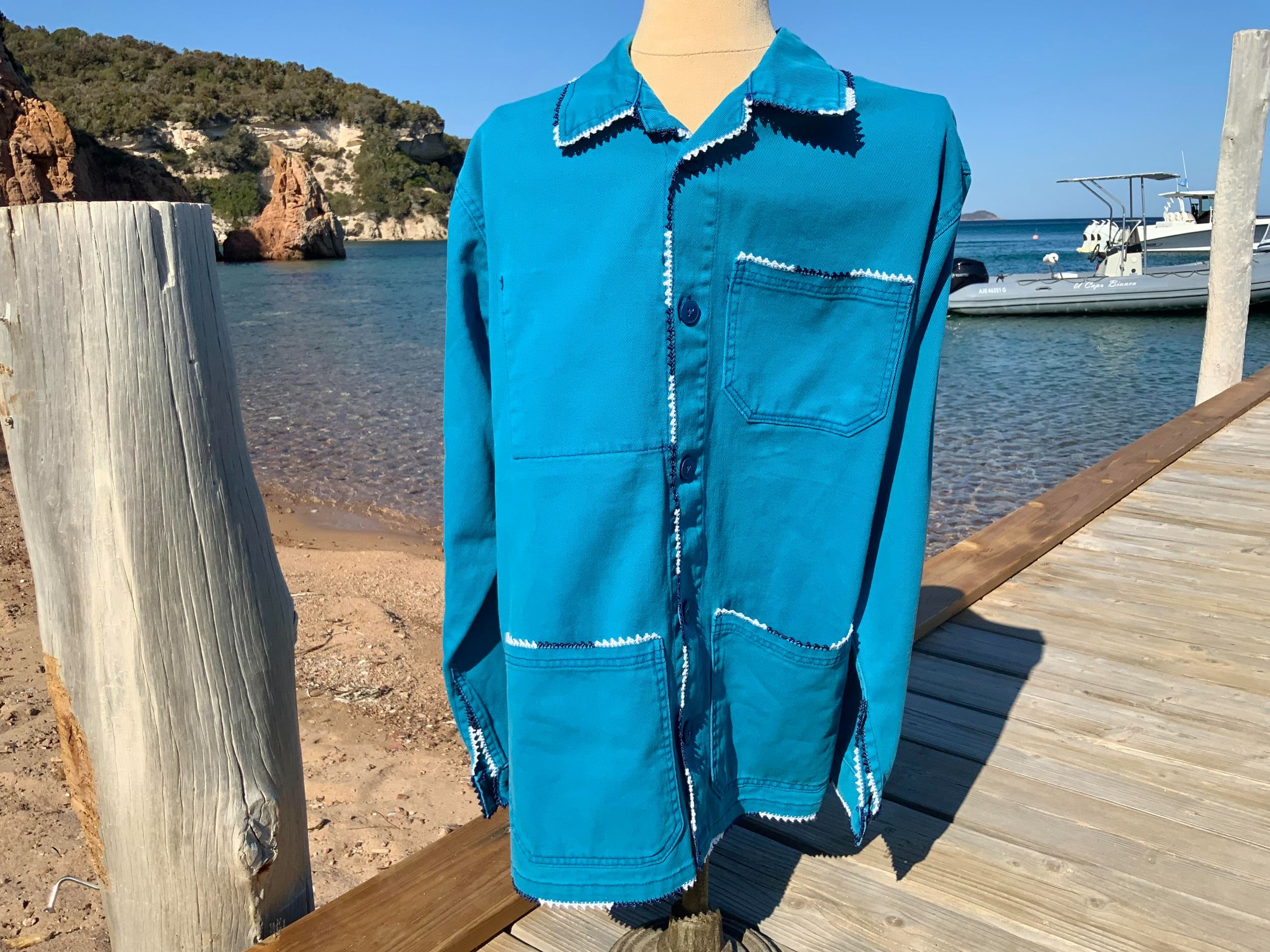 Cette veste en coton, pratique pour le quotidien, se pare de touches uniques, artisanalement réalisées en crochet, lui conférant une âme pleine de caractère.