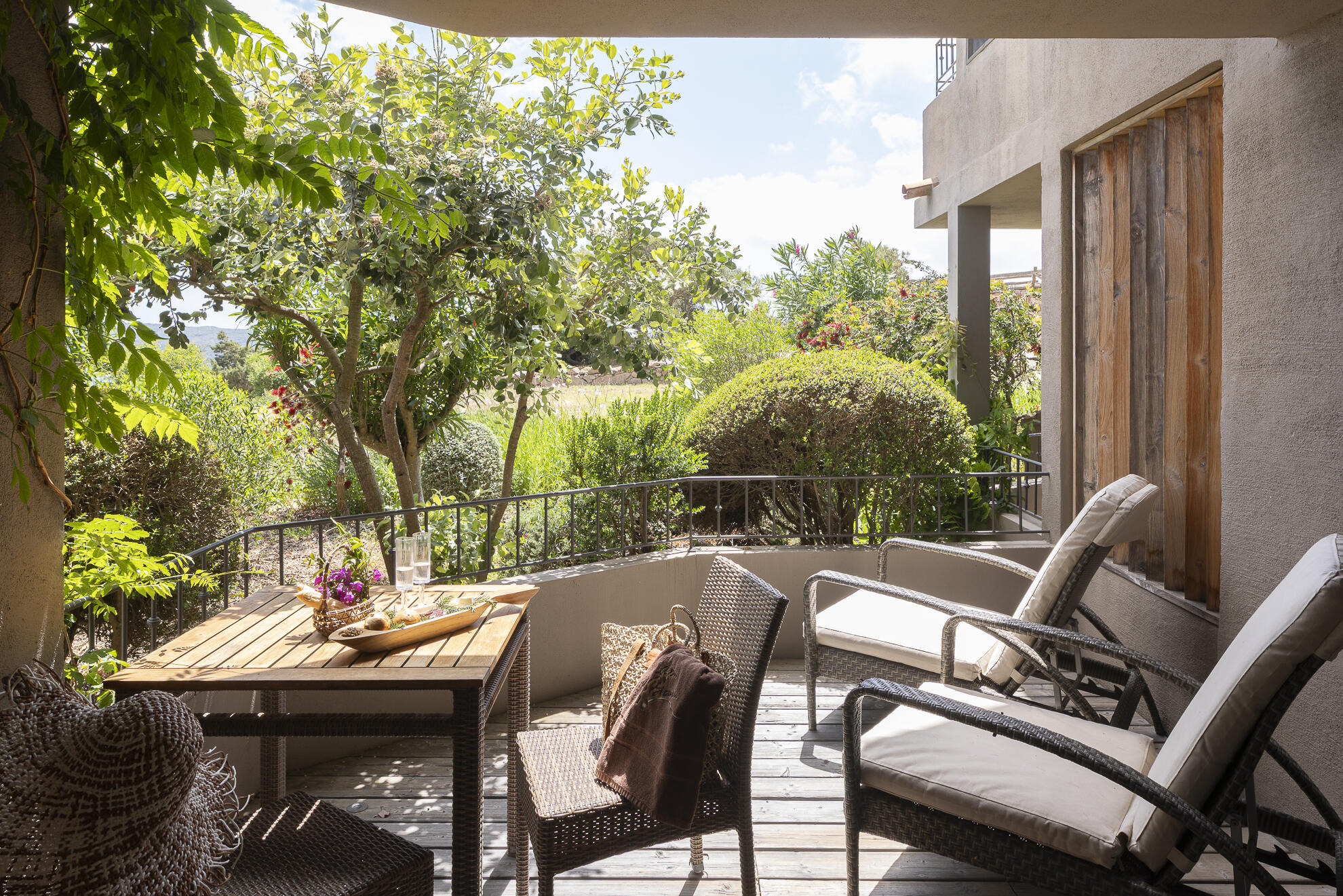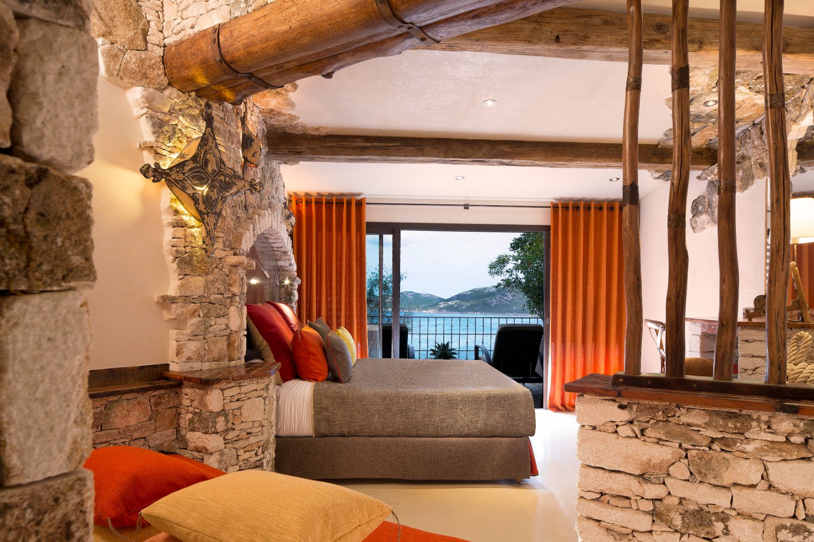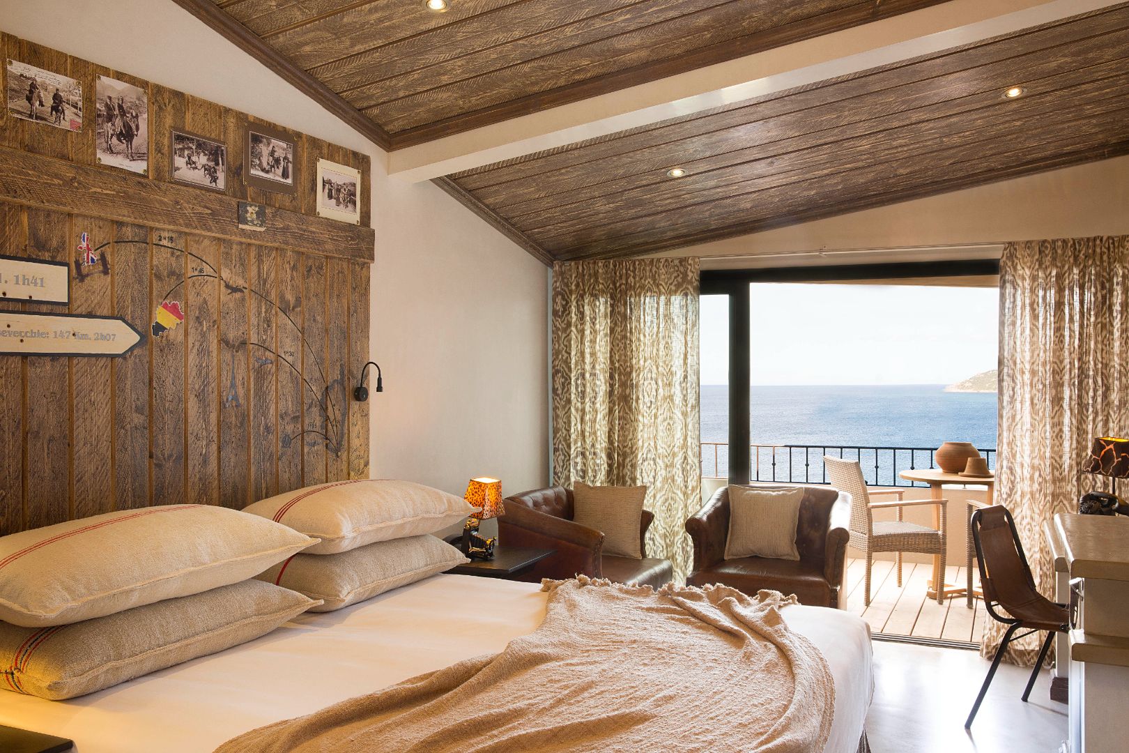 Deux chambres spacieuses aux couleurs de la Corse. Depuis leur terrasse ouverte sur la mer, le bleu méditerranéen prédomine, laissant les nuances de rouge, de jaune et d’orangé réchauffer l’intérieur et s’unir à la chaleur du bois et à la force de la pierre.