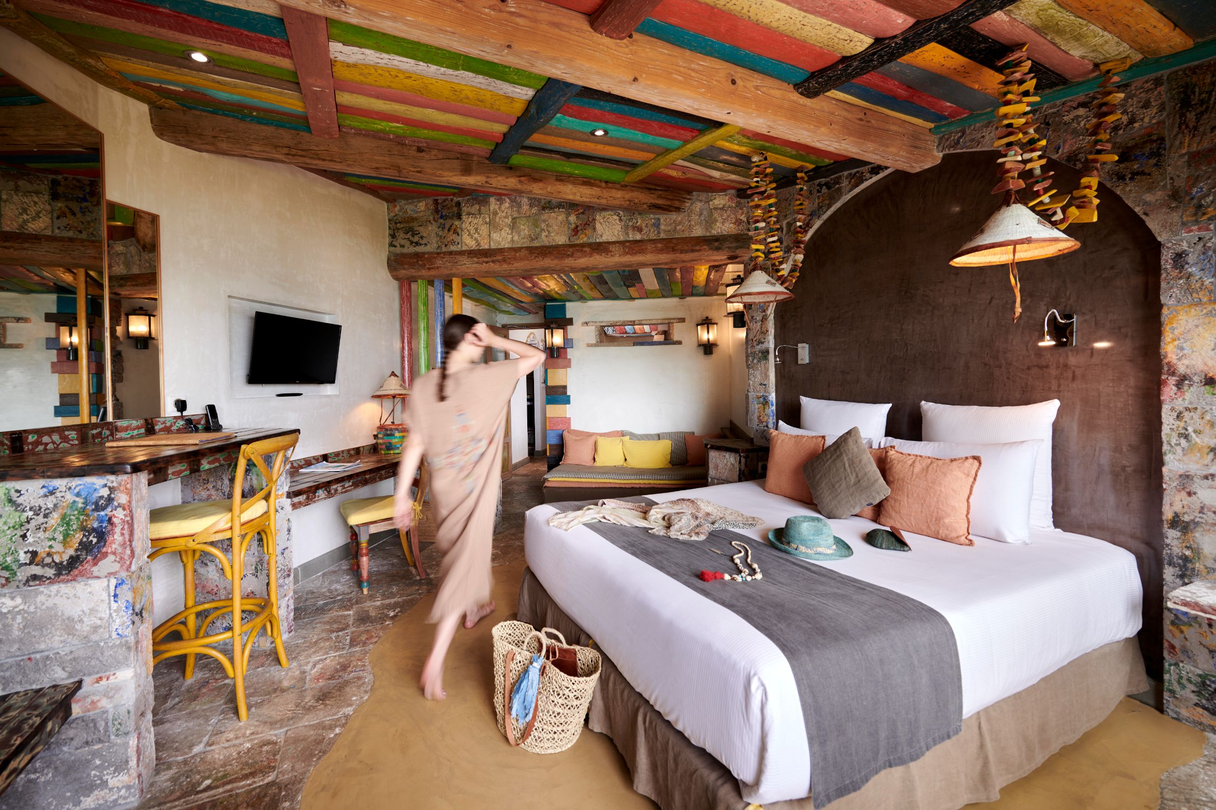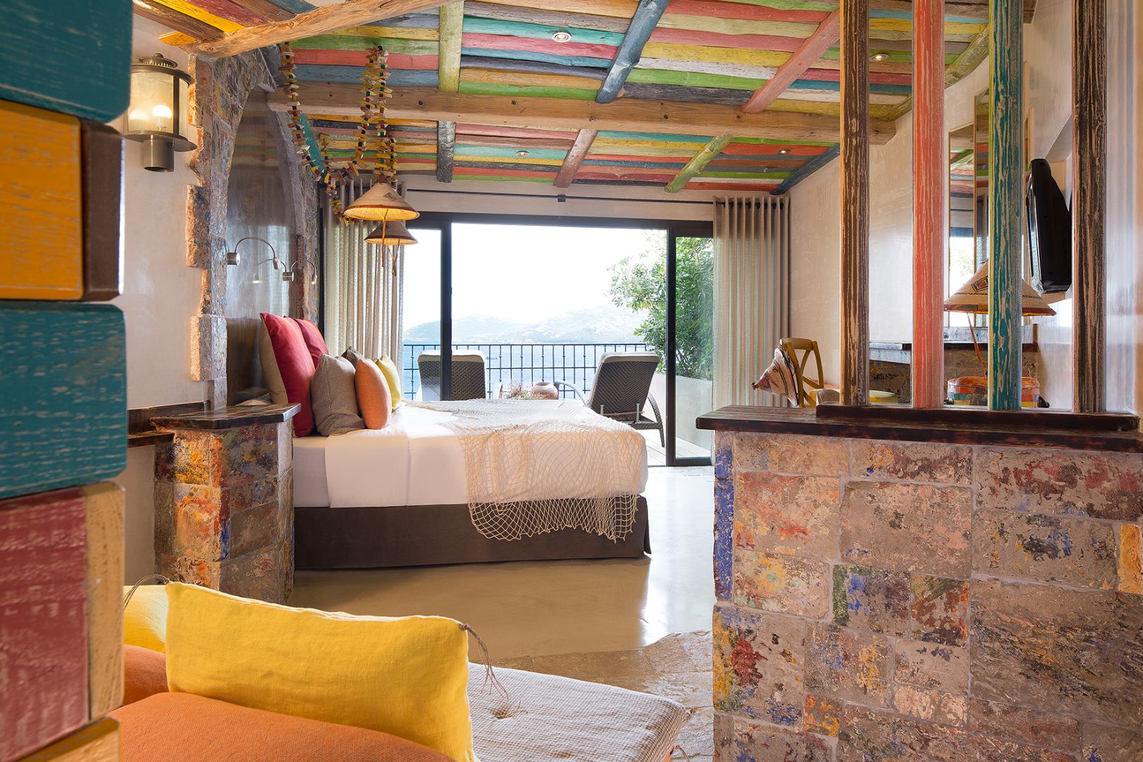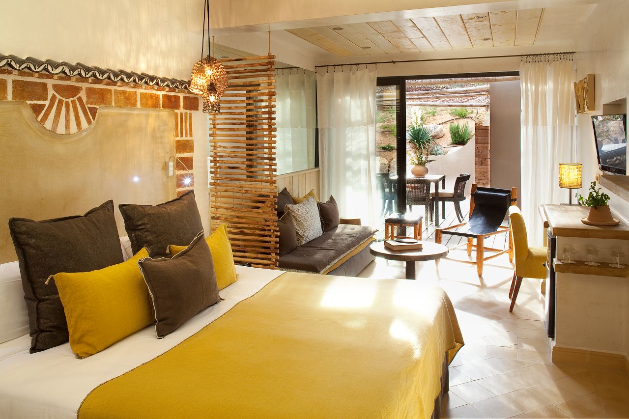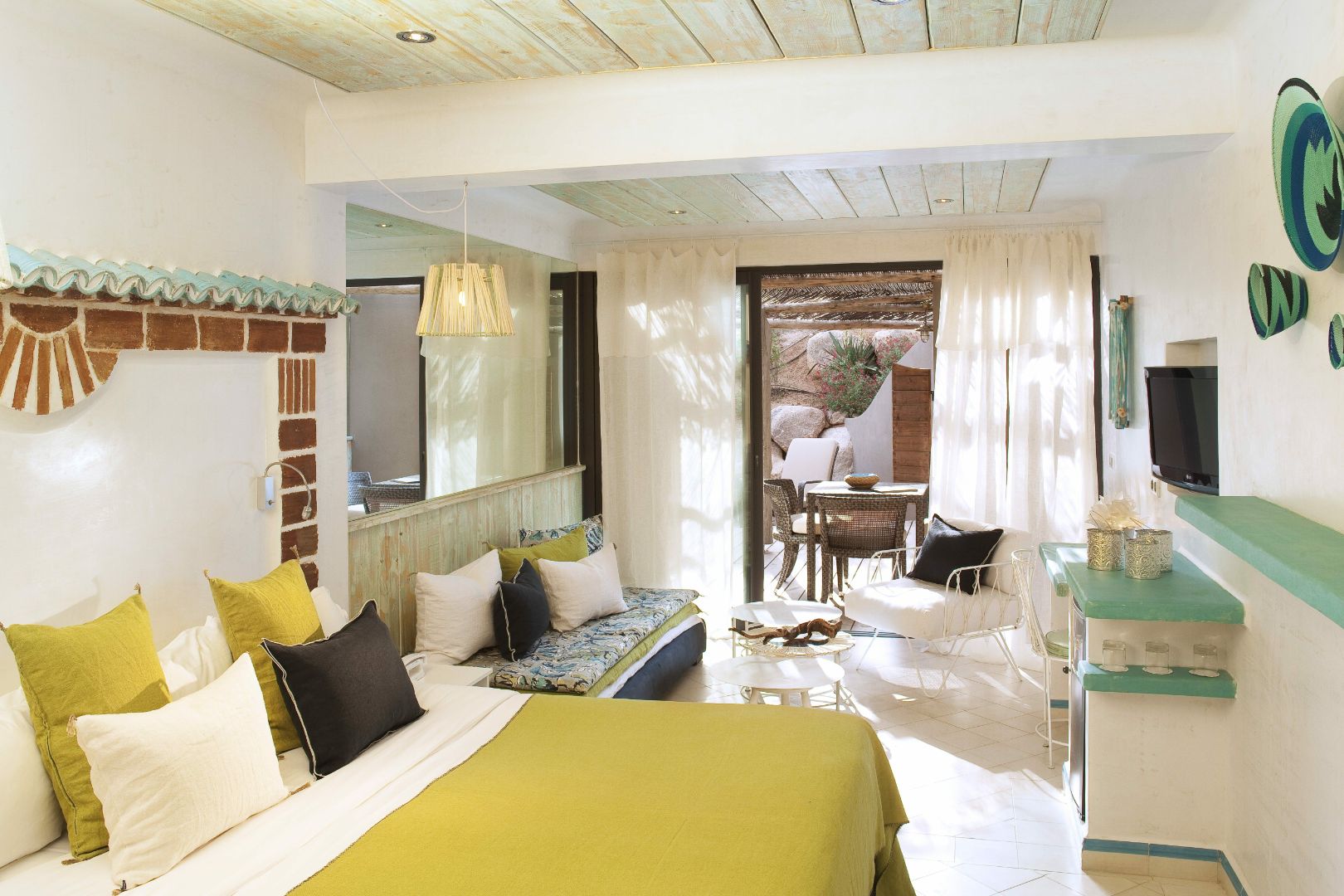 Deux chambres spacieuses aux couleurs de la Corse. Depuis leur terrasse ouverte sur la mer, le bleu méditerranéen prédomine, laissant les nuances de rouge, de jaune et d’orangé réchauffer l’intérieur et s’unir à la chaleur du bois et à la force de la pierre.